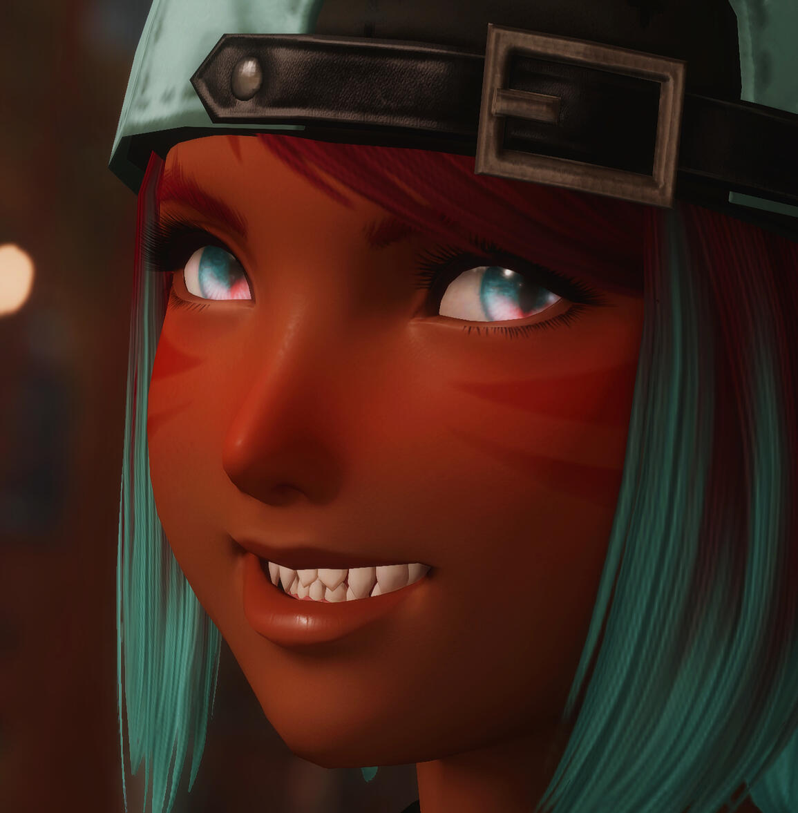 Adorned with gadgets both simple and complex, Liani's stature is generally the first one notices upon looking the miqo'te over; standing at an impressive 5'8" with arms that denote years of metalworking. Next to note would be the devices themselves, glowing with various shades and colors, offering an almost otherworldly appearance.Those with a phobia of technology should steer clear of the technomancer.